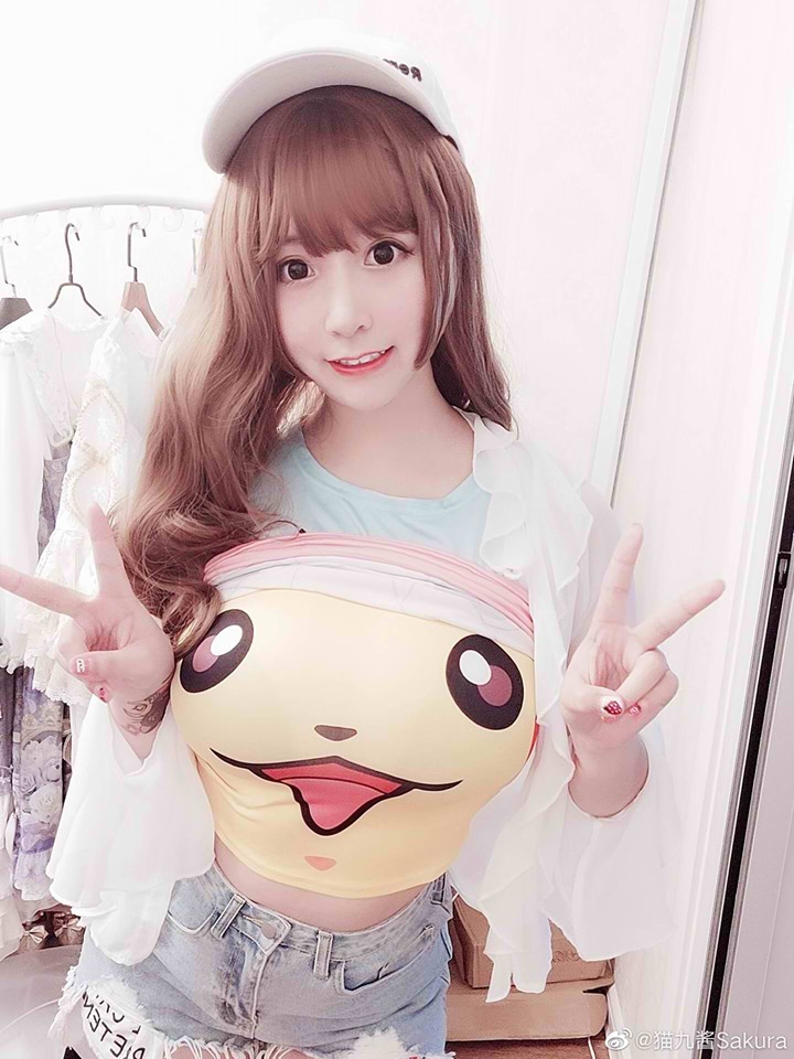 原来这位巨乳妹子是斗鱼主播猫九酱Sakura,有「中国第一童颜」的封号,